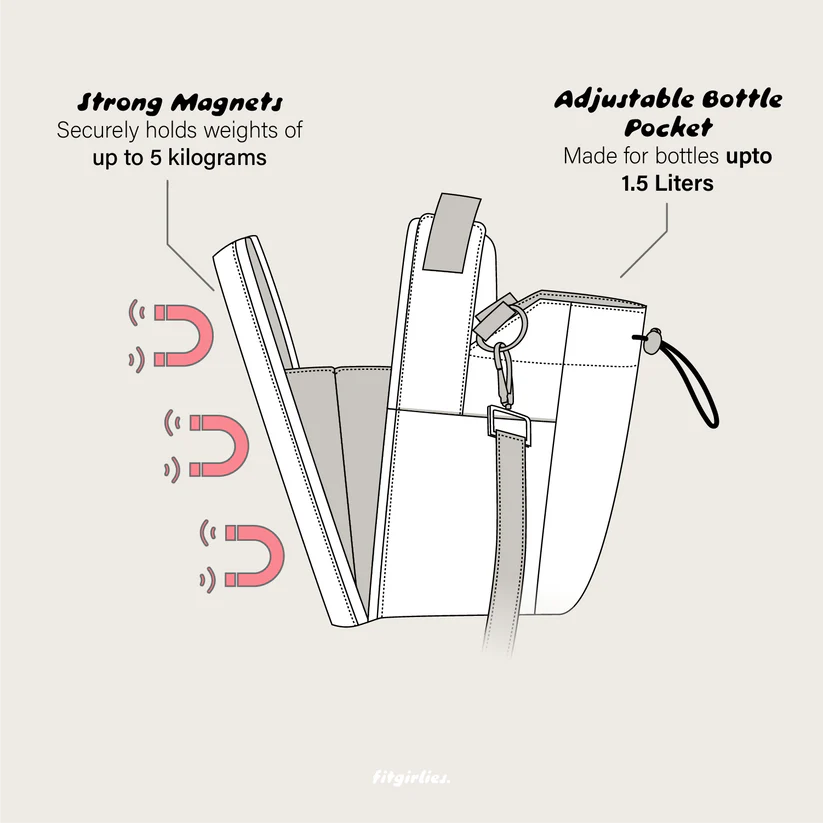 With magnetic closures, dedicated bottle storage, and space for your personal items, it’s the perfect companion for every workout.